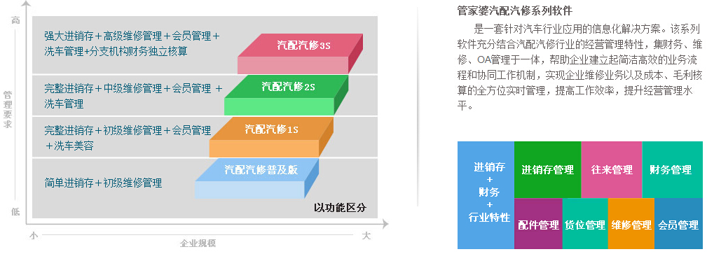 | 主要区别点 | 汽配汽修普及版 | 汽配汽修1S | 汽配汽修2S | 汽配汽修3S |